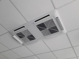 2.13/4.54/6.14 kW heating capacity in 1 row heat exchanger and 1.49/3.68/5.06 kW cooling capacity in 3 row heat exchanger, air flow 180/500/750 m³/h, sound pressure level 16/29/41 dB(A), max. fan power 34 W, ceiling hole 600x600xH250 mm, weight 19.5 kg, 2 year WARRANTY |